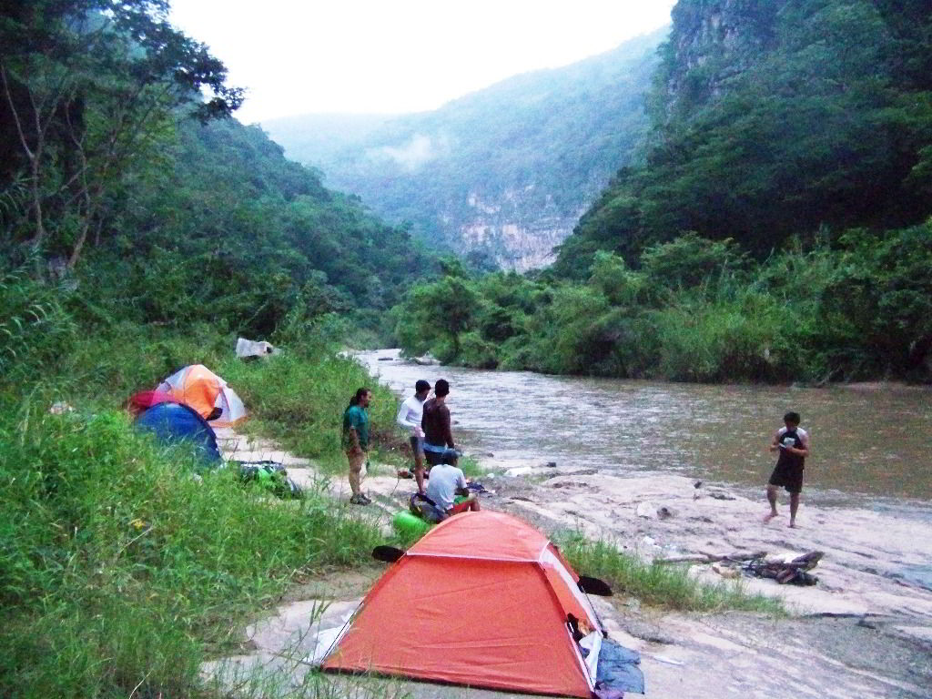 Giorno 02.- Al mattino presto prepariamo l´alimento e si fa prima colazione per poi continuare il nostro percorso e arriviamo LA CASCADA DE LA CONCHUDA posto si una belleza incredibile, qui abiamo tempo per esplorare questa caduta d´acqua, nuotare e semplicemente godere della natura, mangiamo e contuamo fino al posto chiamato LA BAJADA DEL MACHO, esgonfiamo le nostre inbarcazioni, sistemiano la nostra attrezzatura e cominciamo a maminare il sentiero di salita per circa due ore e mezza, arriviamo ad un rancho dove ci aspetta delle bibite e da mangiare, metiamo il nostro bagaglio nella macchina e partiamo verso la sima de las cotorras (la voragine dei pappagalli) sistemazione in tende o bungallows del posto, resto del tempo libero, cena e pernotamento.
