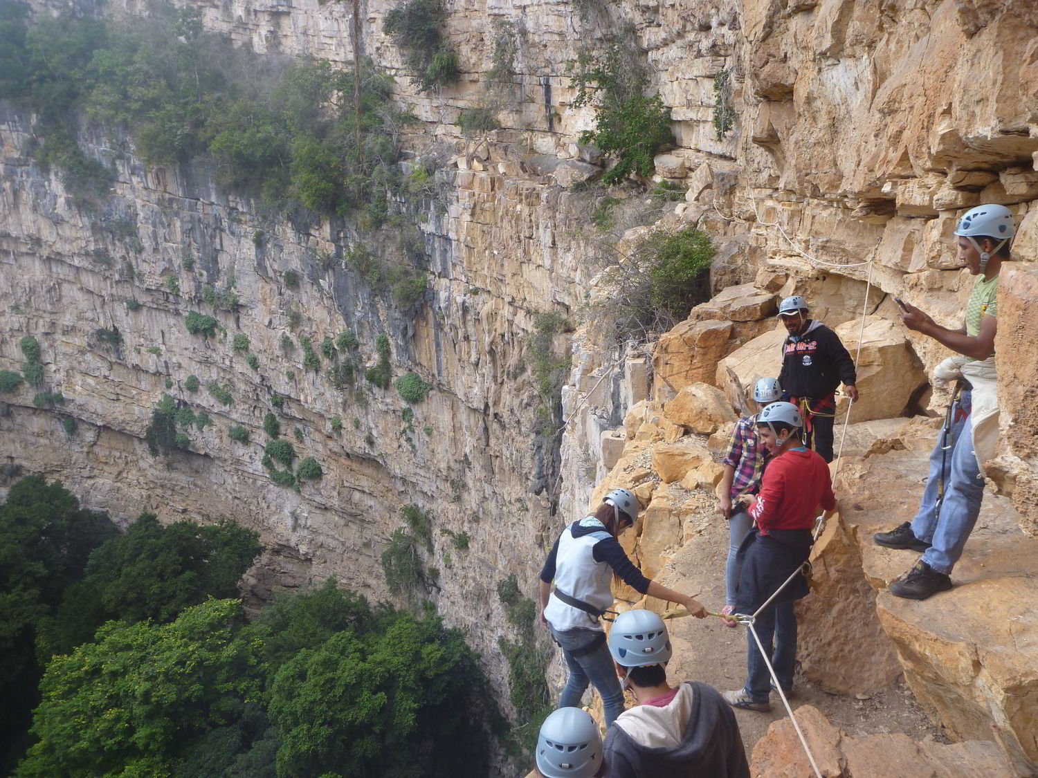Giorno 04.- Al mattino presto 06:45 posiamo vedere la uscita in vuoli circolari dei pappagalli verdi facendo uno spettacolo bellisimo, doppo la prima colazione la guida locale ci da l´ attrezzatura necesaria che consiste in casco, inbrago etc. e cominciamo a scendere allinterno di questo impressionante pozzo naturale di 140 metri di profonditá e 160 metri di diametro, chaimato LA VORGINE DEI PAPPAGALLI, percorreremo il suo perimetro in in sentiero formato sulla roccia, in un certo punto ci attachiamo a la corda i sicureza per pasare la parte piú etretta, poi continuano e usciamo ed il resto del tempo libero per pratticare l´attività opzioanale di Rappel (arrampicata o discesa in corda) non compreso nel pacheto, pranzo e continuazione a San Cristobal de las Casas o Tuxtla Gutierrez.