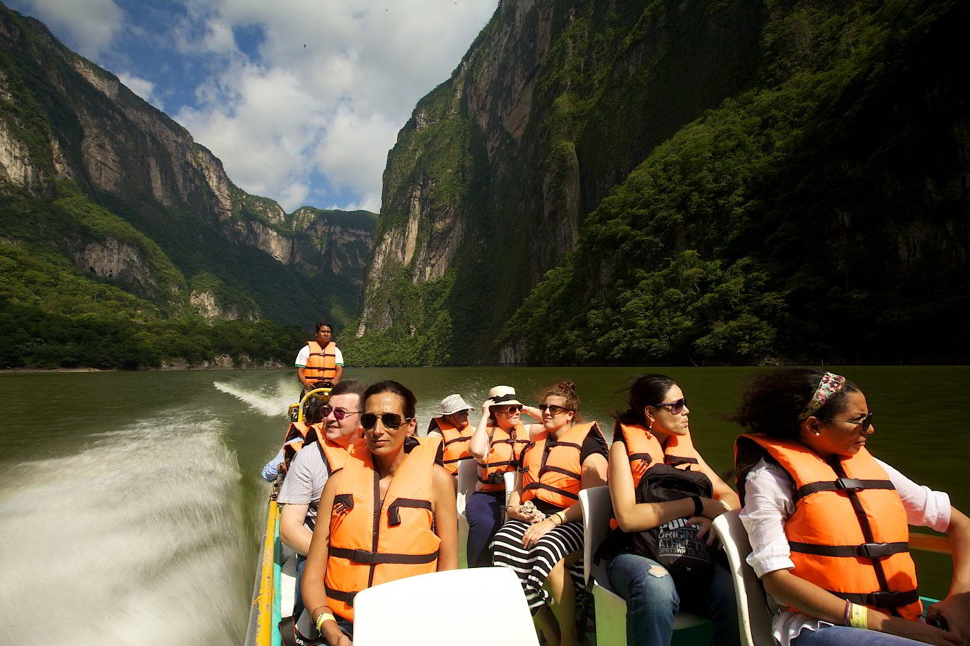 DIA 01.- Recepción en el aeropuerto o terminal de autobuses de Tuxtla Gutiérrez durante y traslado Cahuaré donde tomamos lancha de motor para visitar al impresionante cañón del sumidero, para ver sus altas paredes de piedra calcárea, monos araña, cocodrilos, pajaros y la flora (recorrido de 2 horas aproximadamente) continuación a Chiapa de Corzo, visitamos la fuente colonial, la iglesia de Santo Domingo, comida incluida y traslado a San Cristóbal de las Casas. alojamiento en el hotel
